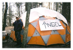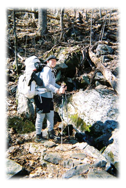 Yesterday, I fell twice coming down off the face of Dragon’s Tooth. It was freezing cold and raining. I had to come down Dragon’s Tooth with Iron Hand-Holds most dangerous thing I have done on this trip. It took forever and was so slippery with the rain. I went into Catawba to resupply. While at the store, I met Briar Patch and Mandy (they hiked in 2001); they took me home with them for the night so I had a warm shower and good food. They absolutely rescued me as I did not have to tent in the rain after the horrible day of climbing What Wonderful Trail Angels! They had 3 dogs; I enjoyed playing with them. I looked at their photo album of their hike in 2001; I enjoyed their pictures and their stories so much.